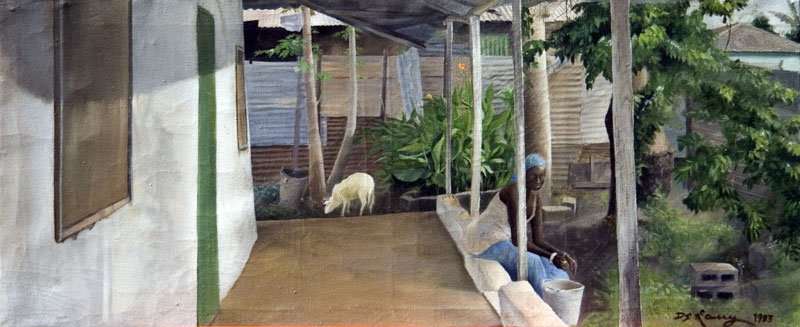 Kennedy Quay Looking West Towards Odlum and R&H Hall Buildings. Oil on board, 29.25 x 29 inches. Tangerine with Garlic and Ginger8 x 8 inch. Oil on panel. Watercolor and ink on 300gsm Arches paper. 8.25×11.5 inches.After a digitial image supplied by artist Pete Hocking. Water mixable oils on wood panel.12 x 12 inches. Oil on panel. 202316 x 38 oil on panel. 2011 Private collectionThe artist with award winning piece, “West End Backside II Bricolage”16 x 20 in. | oil on panel | 2022Serpentinite, 15 x 11 in. Pencil study with colored pencil. Still Life with Leather Jacket and Sewing MachinePencil still life with watercolor wash. Another still life study in Santa Cruz. Watercolor on paper, 10 x 12 in. 1997.Watercolor on paper. 10 x 12 in. 1989.Effects of sunlight through lufa vine leaves outsideOil on canvas, 24 x 36 in (approx.), 1983.Landscape with Seated Woman and RamOil painting of house and yard.Charcoal quick sketchAnother quick sketch in charcoal while we were teaching illustrators at the Book Production Unit in The Gambia, West Africa during my US Peace Corps Volunteer service. Another quick sketch in charcoal while we were teaching illustrators at the Book Production Unit in The Gambia, West Africa during my US Peace Corps Volunteer service. Study of light through curtain on old trunk.